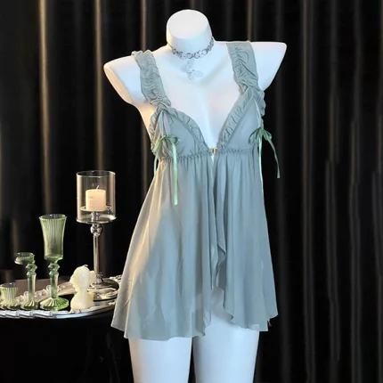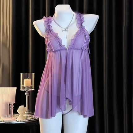 Sexy Underwear Women’s Mesh Neck Lace Sexy Sling Nightgown Backless Perspective Passion Temptation Home Clothes